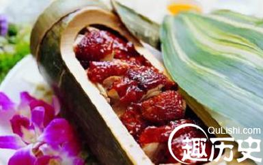 竹筒煮肉,是以新鲜竹子为锅具,煮猪蹄、排骨、鸡、鱼和其他汤菜。烹饪时,砍下一段直径约10厘米,长约40厘米的新鲜竹节,用水冲洗干净,将拟煮的猪蹄、排骨、鸡、鱼收拾干净,砍成小块,分别装入竹筒,加水后排在火塘上慢慢煮熬至熟,加食盐、味精煮至扒烂,倒入碗内供食。用竹筒煮制的猪蹄,排骨和鸡、汤色清纯,肉味鲜美,带有一股青竹清香,具有特殊的风味。用竹筒煮的鸡纵南瓜尖汤,仅加点食盐,其味便鲜美异常。